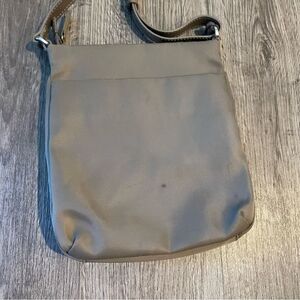 This Brighton bag is in good used condition. Small mark on the back and some very light general wear. Pretty taupe gray color. Adjustable crossbody strap.