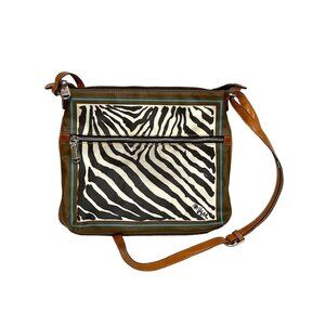 BRIGHTON Vera Neumann Zebra Animal Print Crossbody Purse Leather & Coated Canvas
