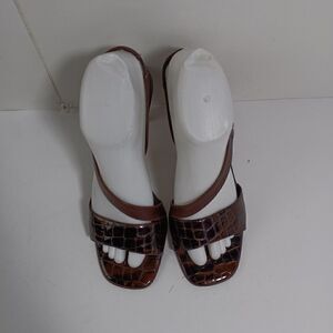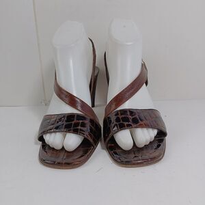 BRIGHTON WOMENS MADE IN ITALY SOFT BROWN CROC LEATHER MID HEEL MULE SANDAL 9