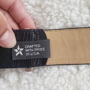 BRIGHTON Women's Black Leather Belt Silver and Gold Tone Buckle Scroll Work