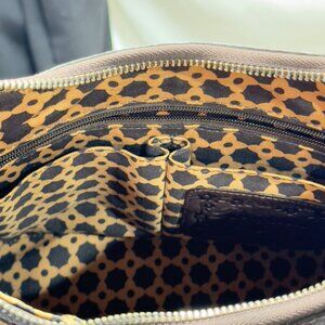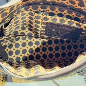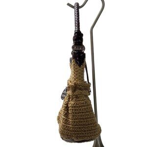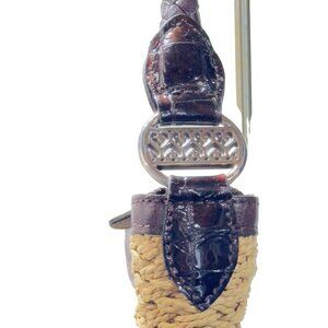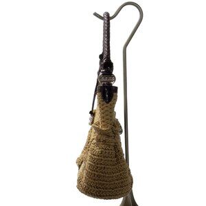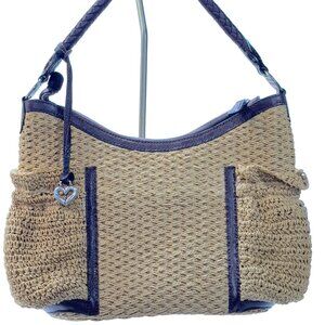 BRIGHTON Women's Woven Jute/Leather Hobo Bag Braided Leather Handle Zip Closure