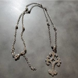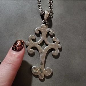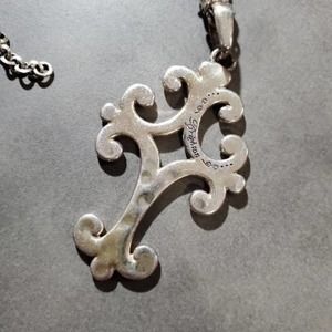 BRIGHTON hammered silver styled large charm cross jeweled necklace