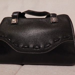 BRIGHTON, black leather, fold over top, pre owned. in excellent condition. contact us with any questions.