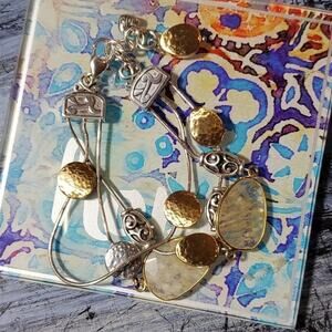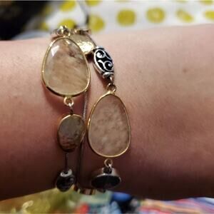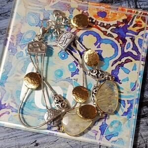 BRIGHTON jeweled crystal Contempo gold 2 tone 3 strand bracelet