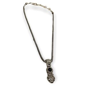 BRIGHTON silver Tone Snake Chain Black Onyx Heart Pendant Necklace