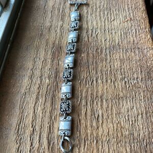 BRIGHTON vintage silver scrolled square link toggle clasp bracelet