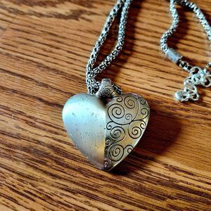 Item Description: Beautiful Vintage Silver Scroll Puff Heart Necklace from Brighton