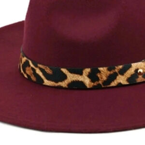 BURGUNDY BRIM FASHION HAT W/ LEOPARD STRAP ACCENT