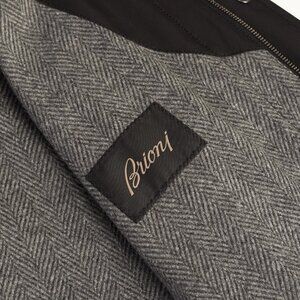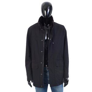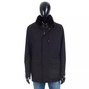 BRIONI 5250$ Black Silk Performa Field Jacket, Cashmere Lining, Shearling Collar