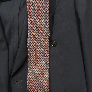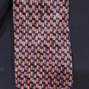 Excellent condition. Navy tie with red and light blue printed design. There’s a subtle background stripe pattern that turns heads every time.