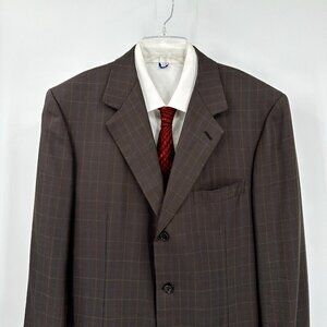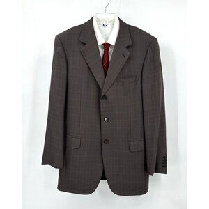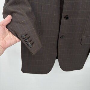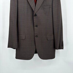 BRIONI FOR NEIMAN MARCUS jacket blazer sport coat windowpane plaid brown 44L