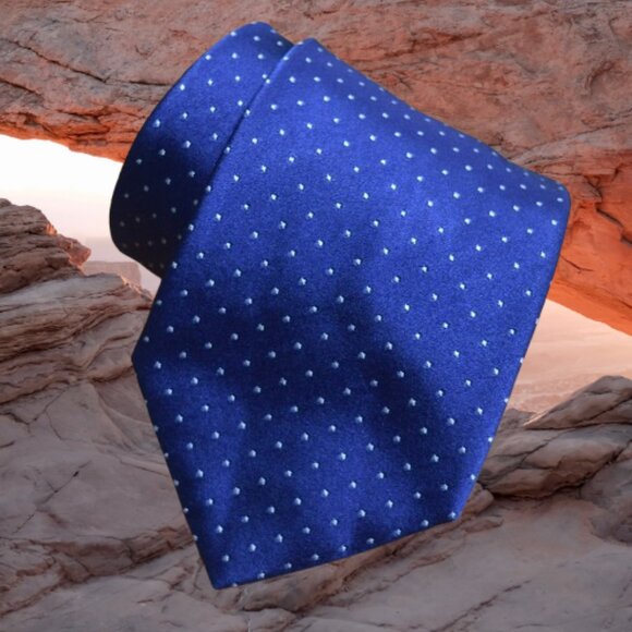 BRIONI Navy Blue Aqua Micro Polka Dots handmade Geometric Handmade Silk Neck Tie