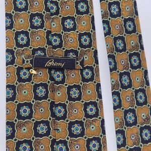 BRIONI SILK TIE BLACK MUSTARD GREEN LUXURY CHECKER SATIN 3.75" X 60"