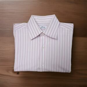 BRIONI Striped Pink Dress Shirt Italy Barneys French Cuffs 41/16 NOWT