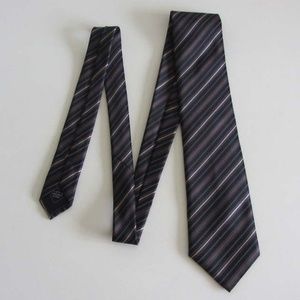 Men's black/grey/gold BRIONI silk tie featuring a pointed tip, an adjustable fit and a striped pattern throughout. Fabric: 100% Silk. Hand Made In Italy. Condition: Excellent new without tag.