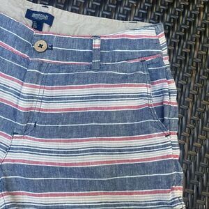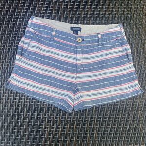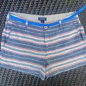 BRITISH KHAKI RED WHITE BLUE STRIPED LINEN SHORTS SIZE 2