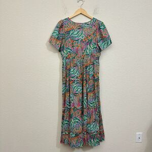 BRITON COURT Willow Maxi Dress Multicolor Tiered Metallic Boho NWOT