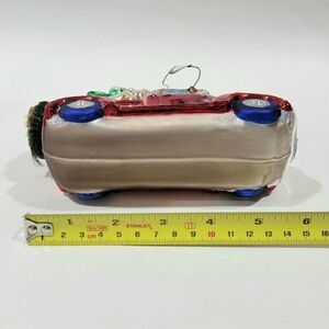 Christmas Ornament Blown Glass Santa in Car with Tree on top.