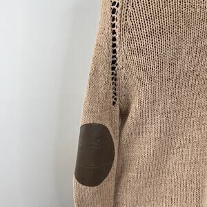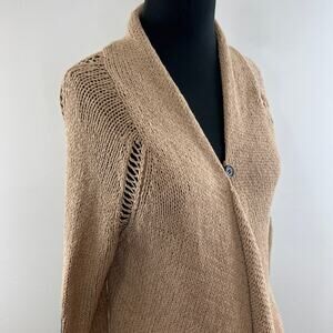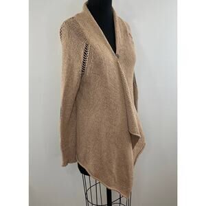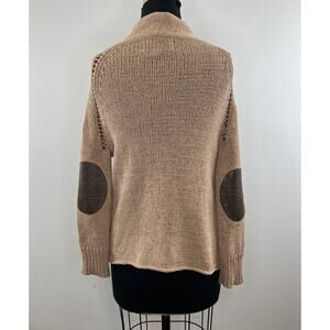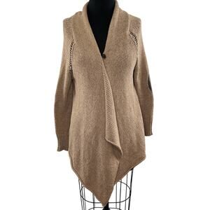 BROCHU WALKER Beige Cotton Knit Elbow Patch Draped Asymmetric Cardigan Sweater M