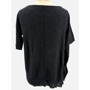 BROCHU WALKER Black Linen Blend Lightweight Top Off-Set Sleeve Sz P