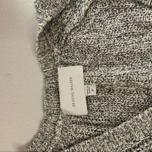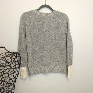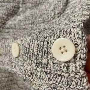Absolutely adorable grey marled cable knit cardigan with cream color block contrast cuffs and oversized white buttons from the brand brochu walker