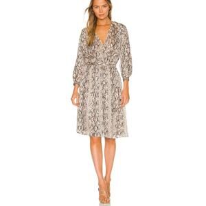BROCHU WALKER DRESS S PYTHON GOLD METALLIC SNAKE PRINT OLIVIA LONG SLEEVE SHORT