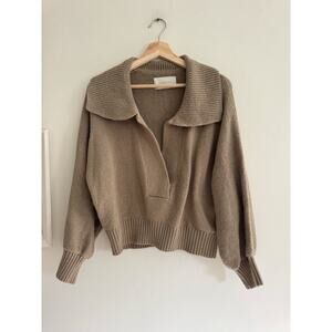 BROCHU WALKER Marlowe Taupe Cropped Henley Sweater Size Small