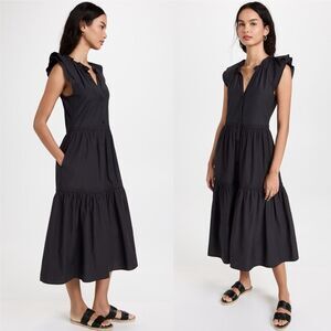 BROCHU WALKER Size XS Santorini Midi Dress Washed Black Lightweight Poplin