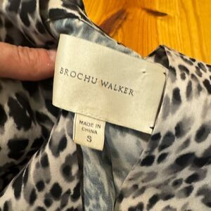 BROCHU WALKER Snow Leopard Print V-Neck Sleeveless Draped Top in Grey Black SM