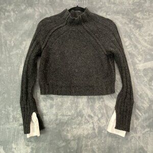 BROCHU WALKER Women Wool Sweater Sz M Black Crop Alpaca Casual Scholar 3-33