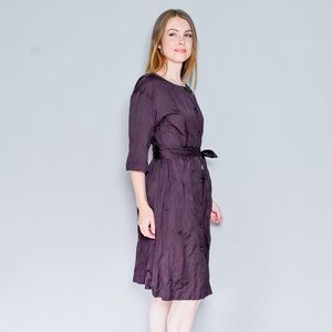 BROCK COLLECTION Eggplant Button-Front Tie-Belt Dress Sz 8