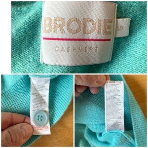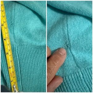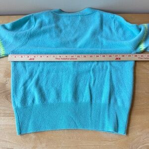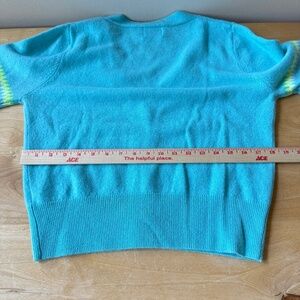 Size Small, Amalfi blue and Neon yellow, button front, balloon sleeves, ribbed trim, sustainable, ethically sourced, Mongolian cashmere.