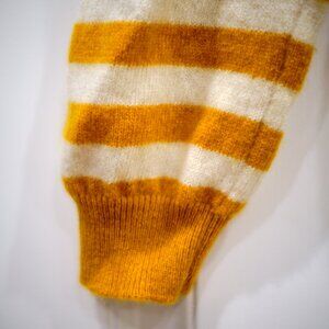 Brodie Cashmere long sleeve turtleneck in mustard / cream stripes. Super soft and luxe!