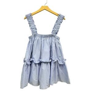 BROGGER Cotton Poplin Blue Striped Babydoll Top size Small NWT