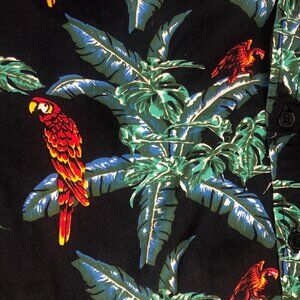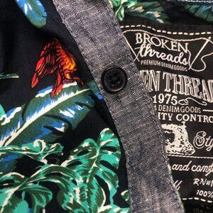 BROKEN THREADS Hawaiian Shirt Button up Size Small Red Parrot in the Trees Blue
