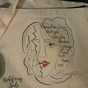 Are you feeling Broken? Well stop! because you are BEAUTIFUL, no one in this world is perfect we all make mistakes but God doesn't see imperfections he just sees a lot of broken pieces that he can put back together and form something absolutely Beautiful...SO when you wear this bag remember you are BEAUTIFUL because God handmade you himself.