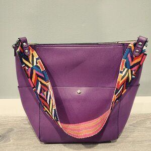 BROMEN Purse Large Bucket Bag Hobo Vegan Leather Handbag Purple Colored Strap