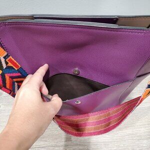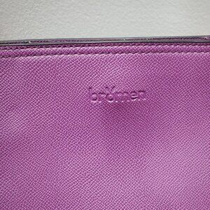 BROMEN Purse Large Bucket Bag Hobo Vegan Leather Handbag Purple Colored Strap. Please note the purple leather shoulder strap is included and never been used. There are a few marks on the inside including what appears to be an ink line. There is slight damage to 2 of the purse corners. See attached pictures for condition.