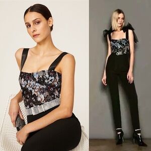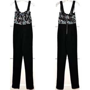 BRONX & BANCO Floral Sequin Sleeveless Bustier High Rise Slim Leg Jumpsuit S