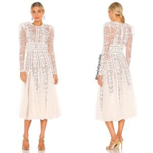 BRONX & BANCO Megan Midi Dress Bridal White Floral Lace Embroidered