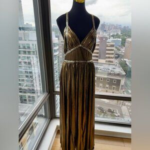 🆕 BRONX & BANCO 🧿 NWOT Star Metallic Maxi Dress w Dramatic Slits - Sz S US 4