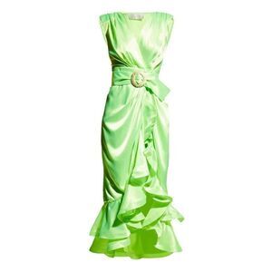 BRONX and BANCO Neon Green Lika Belted Asymmetric Ruffle Wrap Dress Size…
