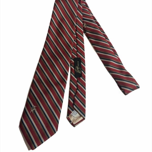 BRONZINI Red Tan Blue Stripe Tie Silk Blend Levy's Nashville Business Career