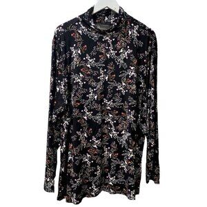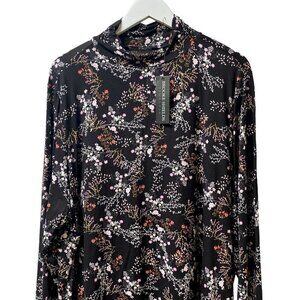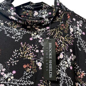 BROOK SHIELDS Womens Turtleneck Plus Size 2X Black Floral Long Sleeve NWT