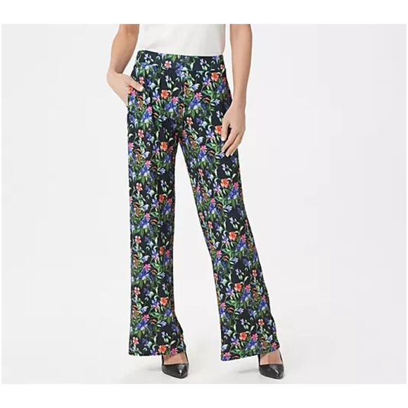 BROOKE SHIELDS Timeless Flat Front Wide-Leg Pants Summer Bouquet 3X NEW A350165