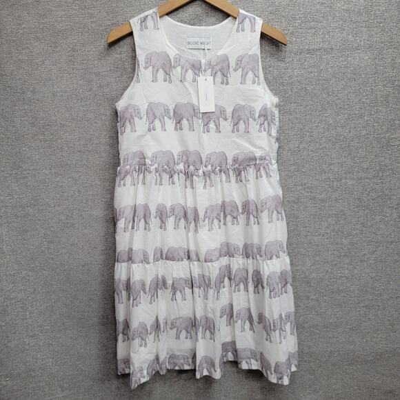 Elephant print sleeveless casual dress with pockets. Size tag not available, but I believe it fits like a medium. See measurements for size and fit. NWT in excellent condition with a minor flaw. There's a small faint spot on the front. See last photo.