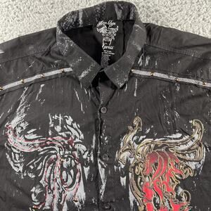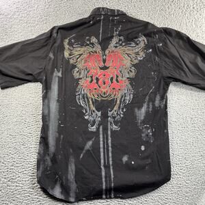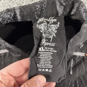 BROOKLYN EXPRESS SHIRT MENS XL BLACK DRAGON SPLATTER STUDDED BUTTON Y2K 2 SIDED