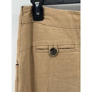 BROOKLYN INDUSTRIES Women's Tan Linen-Blend Button-Detail Relaxed-Fit Wide-Leg Pants SZ 4