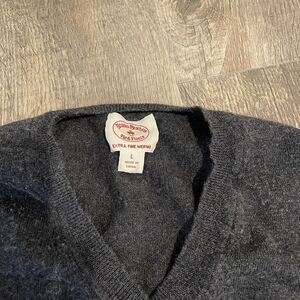 Vintage Y2K 90s BROOKS BROTHER Woman's Gray Extra Fine Merino Wool Sweater - Red Fleece - Large.
