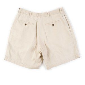 BROOKS BROTHERS 346 100% Linen tan pleated shorts size 38, fit like 36